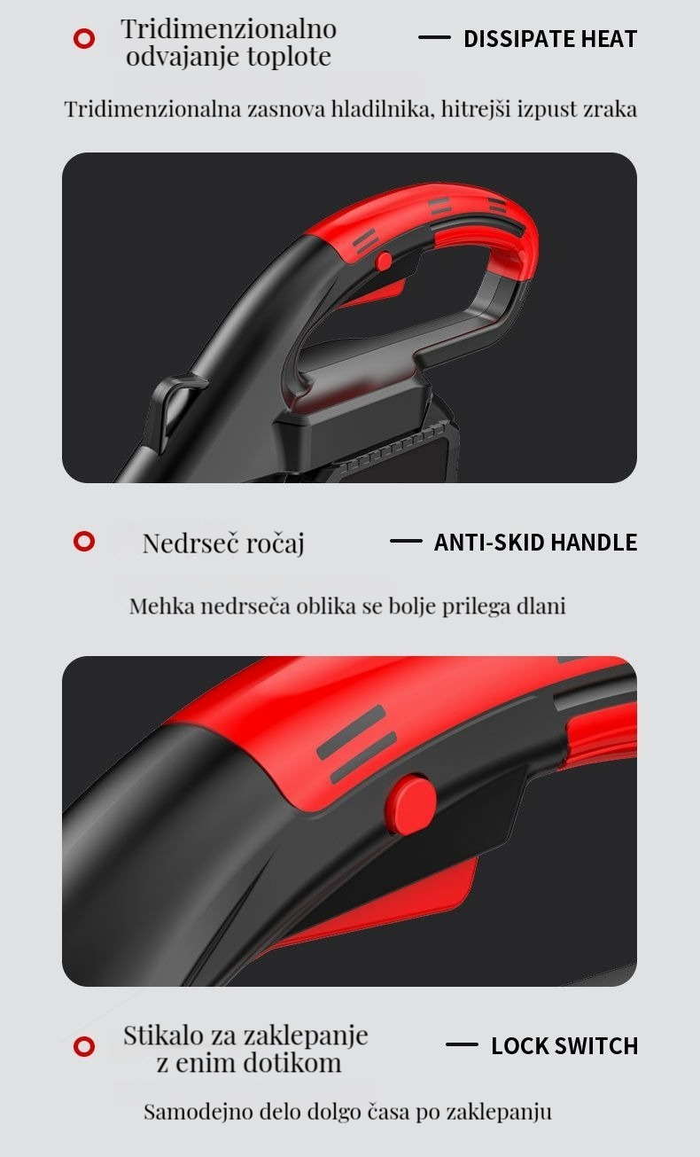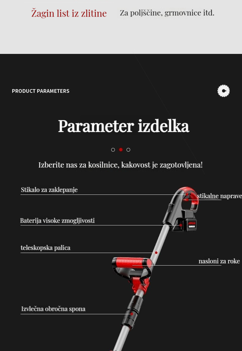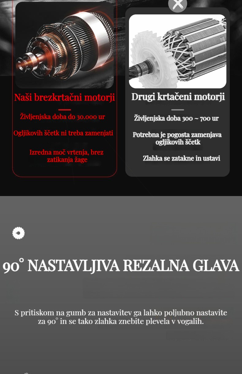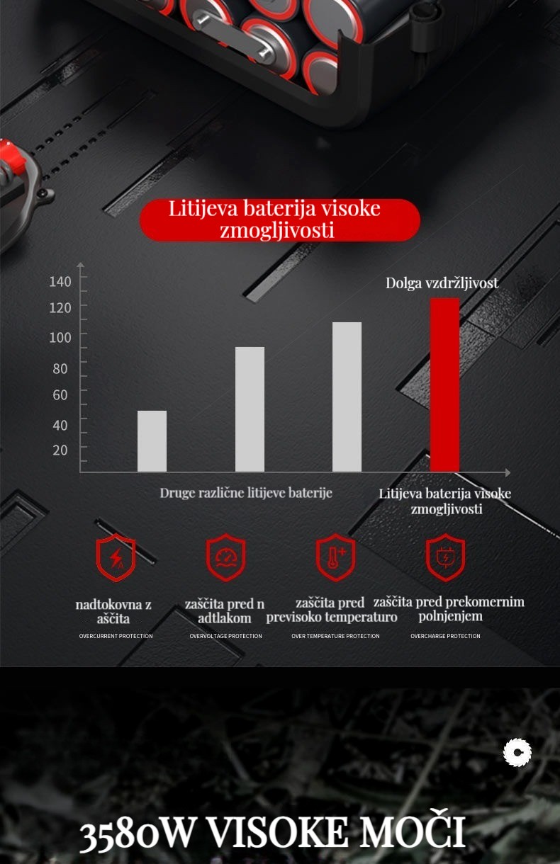 Brezkrtačna litij-ionska kosilnica, popravljanje trate in obrezovanje dreves je enostavno!